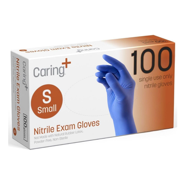 Caring Nitrile Exam Gloves – Blue, Powder-Free, Disposable, 90 Count